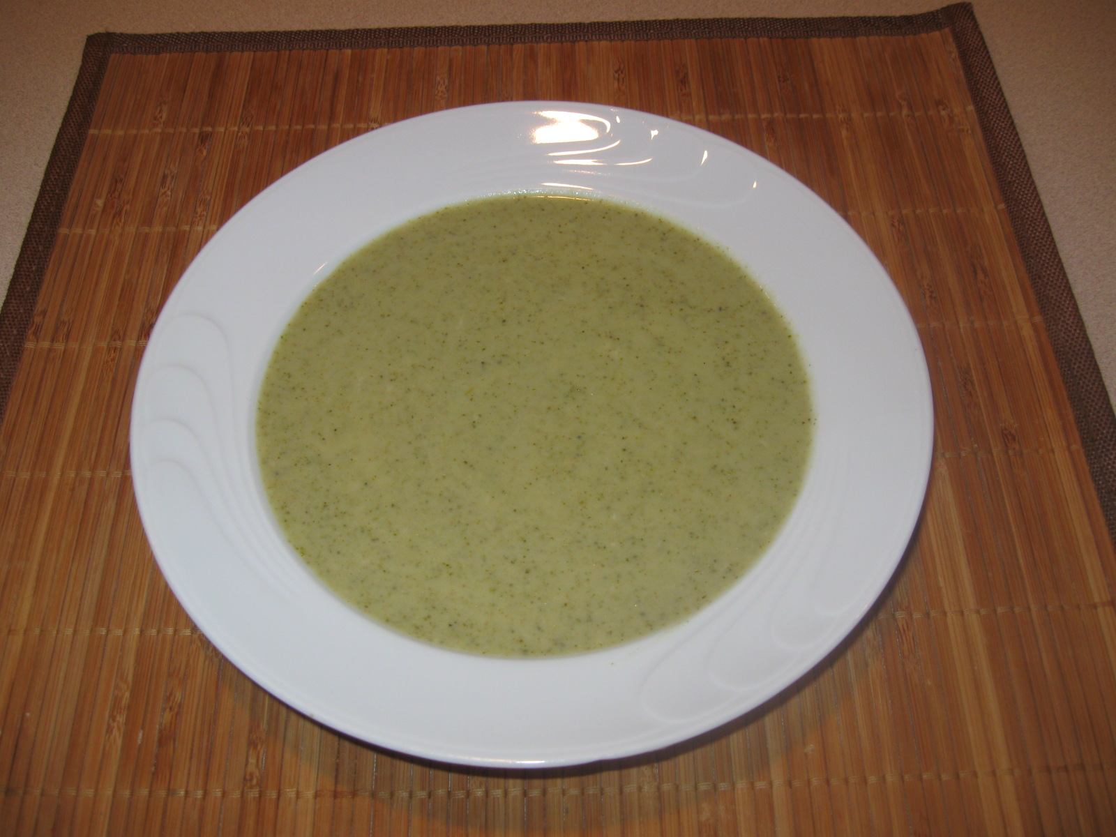 How to make: Saute the onion. Add broccoli. Add chicken broth. Boil for 20 minutes. Add salt & pepper. Puree with hand held blender . When you are ready to serve, add some heavy cream or milk. Give it a good stir and serve with nice multi-grain toasted bread.