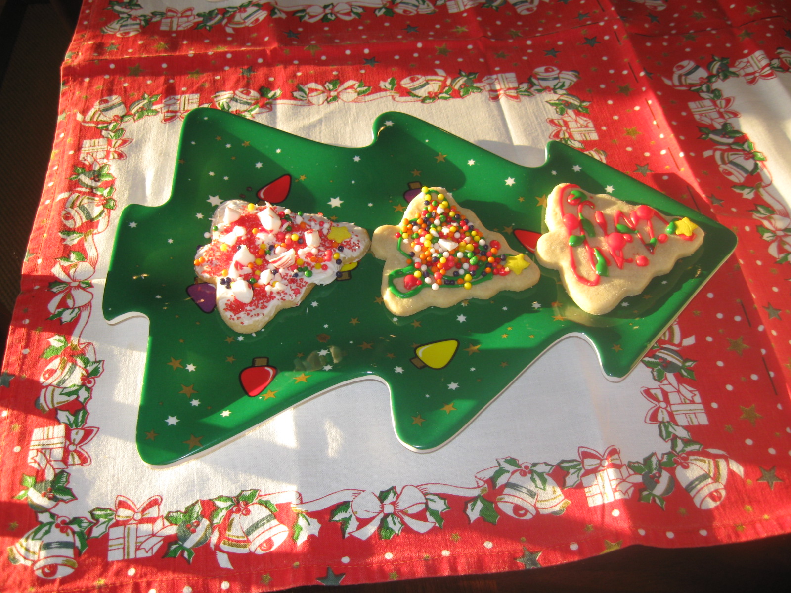 Notes and tips: This year I decided to be fancier with the cookies. I got a non-stick, silicone rolling mat and silicone baking pan liners . I didn’t get too excited about using the rolling mat. Well, actually, it was the girls who used it so I don’t really know but I guess it’ ll be more worthy of its money when rolling dough for pies. That’s because it shows pie sizes. I enjoyed the pan liners. The cookies did not stick at all so I didn’t need to clean the liners from one bunch to another and the pans didn’t even need washing. I also got cookie cutters with stencils to make fancier cookies with jam in the middle, etc, but didn’t use the stencils this time. And, no, that’s not all. I also got a cookie press to make tiny, fun shaped tea cookies. I tried it with different dough while the girls were working on their cookies. It was great! I’ll tell you about it in my next post. Stay tuned.