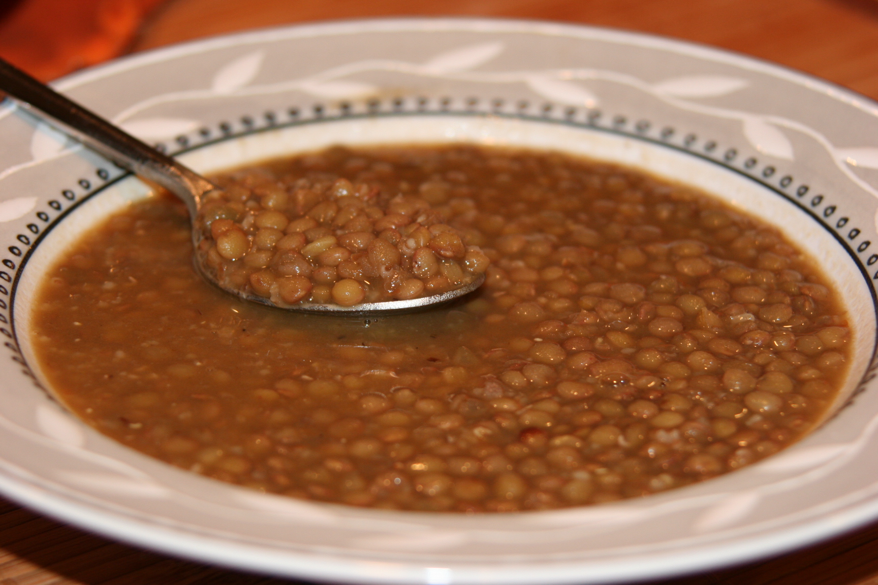 How to make: Rinse the lentils, boil them in water for about 5-10 minutes. Strain the lentils to get rid of the dirty water and put them again in the pot. Fill with water just enough to cover them or more if you want them more soupy. Add the onion, garlic, bay leaves, salt and pepper, olive oil, soy sauce and cook for another 10-20 minutes, depending on the lentils. Some cook faster than others. Do taste the soup to get the taste to be where you like it and add more salt, pepper, olive oil or soy sauce as needed. If you want a darker color add a little tomato paste. If you want a fiber blast dish, add some oatmeal grains. They will absorb some water if the soup is ready but there’s still too much water for your taste. When ready, remove the onion, garlic and bay leaves and serve with toasted bread.