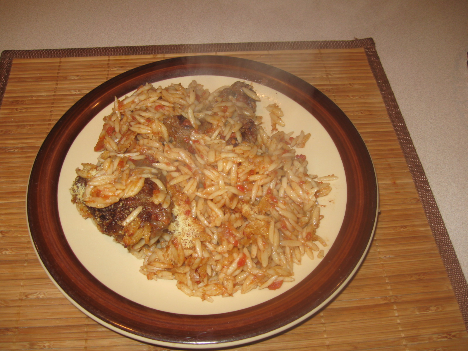 Do you see it’s steaming hot? If not, click on the photo to zoom! I yet have to meet the guy, gal or kid that doesn’t like this dish and it’s fairly easy to make. You can make the pasta and meat ahead of time if you want and store in the fridge. When you’re ready, mix them in pan, maybe add a little water, sprinkle Parmesan on top and throw in the oven (approx. 375 F) for half an hour. It’s coming out drizzling hot and yummy. I made this on Friday just before I left for my trip to Athens and stored most of it in the freezer for my family to enjoy while I’m away.