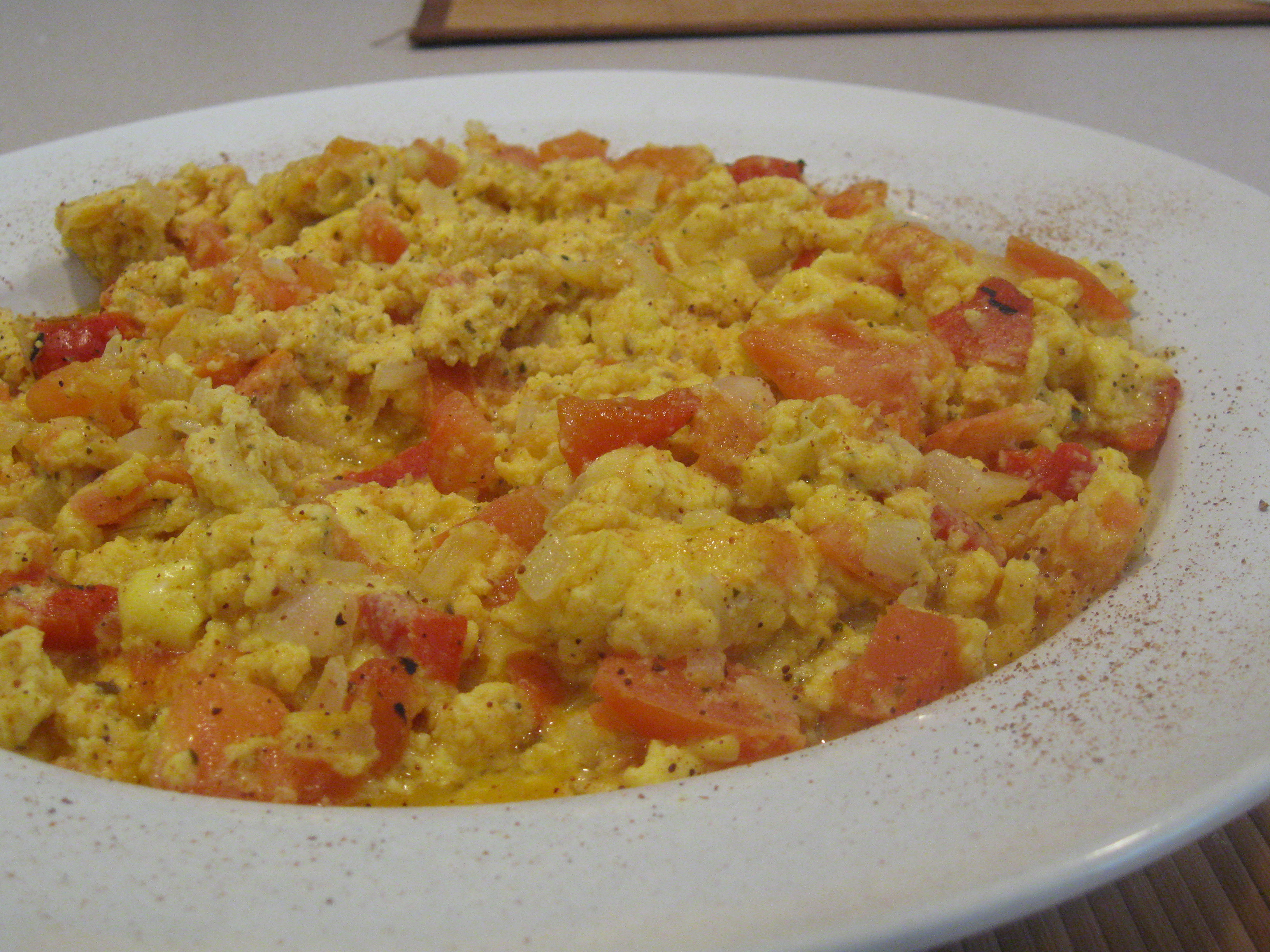 How to make: Heat the oil in a pan and saute the onion, about 5 minutes. Add the diced tomatoes, sugar, basil, roasted red peppers. Cook in moderate heat until the tomatoes are soft and there’s not much liquid left. Add the beaten eggs and stir lightly with a wooden spoon. Let the eggs firm a bit. Give it another stir, let them firm, repeat until they are cooked. Check for salt. Sprinkle nutmeg generously. Give it a stir. You can also add some more nutmeg when you serve. Enjoy!