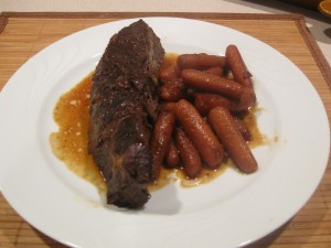 How to make: Wash and pat dry the meat. Rub the meat with the salt, pepper and all spice or Italian seasoning.In a big, deep pan, heat the oil and saute the meat on both sides until brown. Turn sides only once. Lift the meat a bit an put the onion and garlic underneath it. I learned this tip from simply recipes. Cook a few minutes more, then add the wine and cover tightly. Cook for about 3 1/2 -4 hours. I cooked mine in 3 hours and I had to add water in between because the heat was not low enough. Don’t rush to take the meat off the heat too early just because it’s soft to the fork. Let it slow cook to perfect tenderness. About twenty minutes before it’s ready add the carrots. In “simply recipes”, there’s a tip for getting the heat lower if you have a gas stove. Roll up aluminum foil to give a thin donut shape and put it on the stove to create more distance between the pot and the heat. This is a great recipe for kids because the meat comes out really tender and easy to cut and chew.