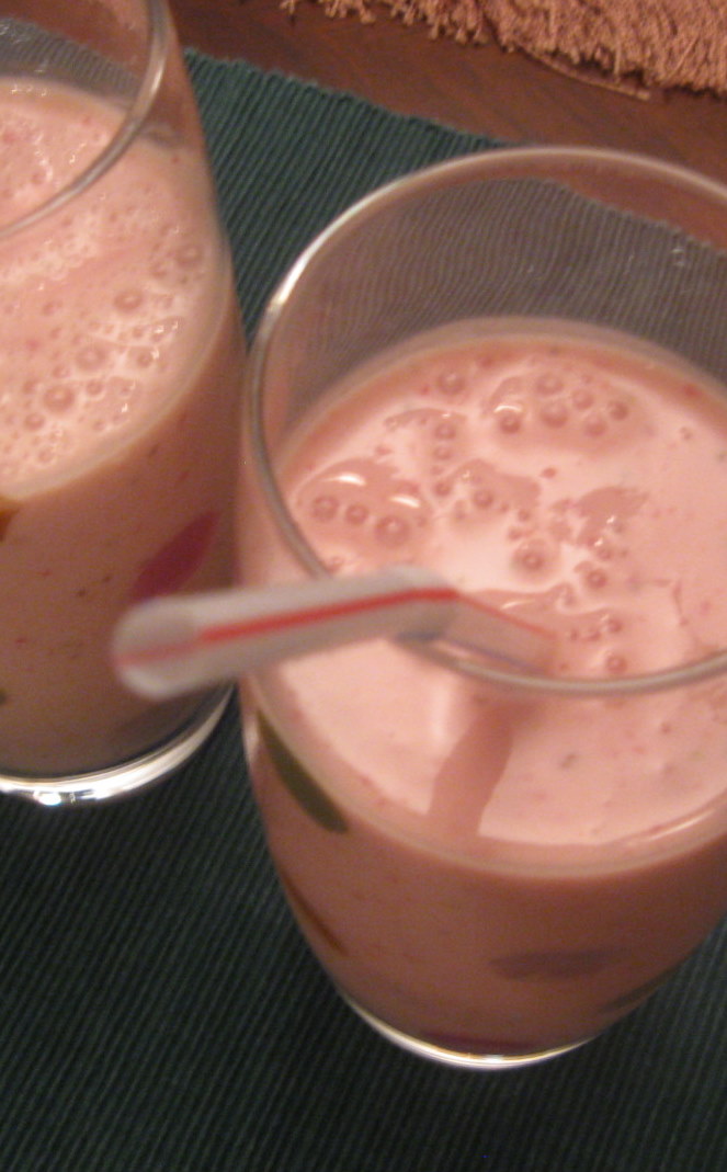 You probably thought that the family treat this past weekend was the banana bread. Not really. The banana bread was a spontaneous Sunday afternoon inspiration. The special treat was strawberry smoothie. This time I used vanilla yogurt instead of plain yogurt and no sugar, no vanilla extract.