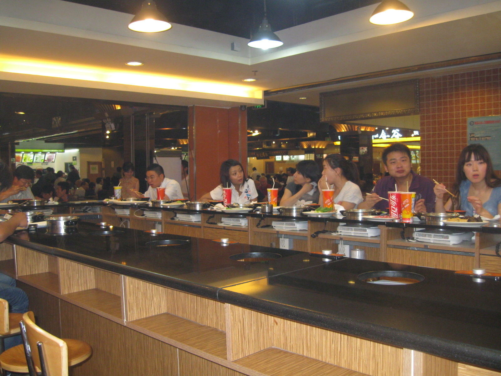 Phew, finally, back home from all the wonderful summer adventures. This summer I discovered a lot about the Chinese cuisine. What a misnomer! As if there is such a thing as the Chinese cuisine. Chinese cuisines can differ dramatically depending on the region. The cuisine that’s most commonly identified as Chinese is the northern variety with everything pretty much fried. That’s a shame, really, because I found much more interesting cuisines. The one I liked the best comes from a province south of Beijing, called Lijiang, but I will tell you about it in my next post. In the photos below, you can see a typical ‘hot pot’ dining arrangement. Each guest has a hot pot, immersed in the counter. It’s possible to have the hot pot on top but it’s more convenient to cook in it when it’s lowered.
