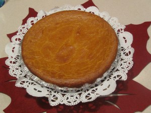 How to make: In a food mixer, beat the cream cheese until soft and smooth. Add the pumpkin, sugar, and salt. Beat until well blended and smooth. Add the eggs, yolk, melted butter and cream. Beat until well blended and smooth. Add the cinnamon, ginger and vanilla extract and beat until well blended and smooth. Pour the pumpkin mix in the pie crust and bake in a 360F/189C oven for about 50 minutes or until the center is nice and firm (or at least not wobbly). Enjoy!