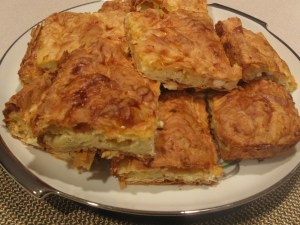 How to make: Crumble the feta cheese in a bowl and set aside. Beat the eggs lightly, mix them with the milk and set aside. Brush the bottom of a pan with oil. Take a phyllo sheet and lay it on the bottom. Fold in the corners of the phyllo sheet if you’re using a round pan or a pan smaller than the sheets. Brush with a little oil, especially at the edges. You don’t need to use too much oil. Just a little bit. Repeat with a second layer. Then sprinkle a little cheese here and there, not too much. Repeat (spreading feta cheese every two sheets) until there’s about 4 sheets left. Lay the last 4 sheets on top but this time be sure to fold the corners under themselves so the top looks good. Brush the top with oil. Pour in the egg and milk mix and shake the pan lightly so the mix penetrates the pie evenly. Cut the pie in pieces. Let it stand in the fridge for about 5 hours. Cook in medium hot oven until it’s nicely browned.