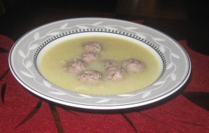 We used the leftovers from the minced meat & rice stuffing for the zucchini (as-is) to make soup with meatballs (giouvarlakia)