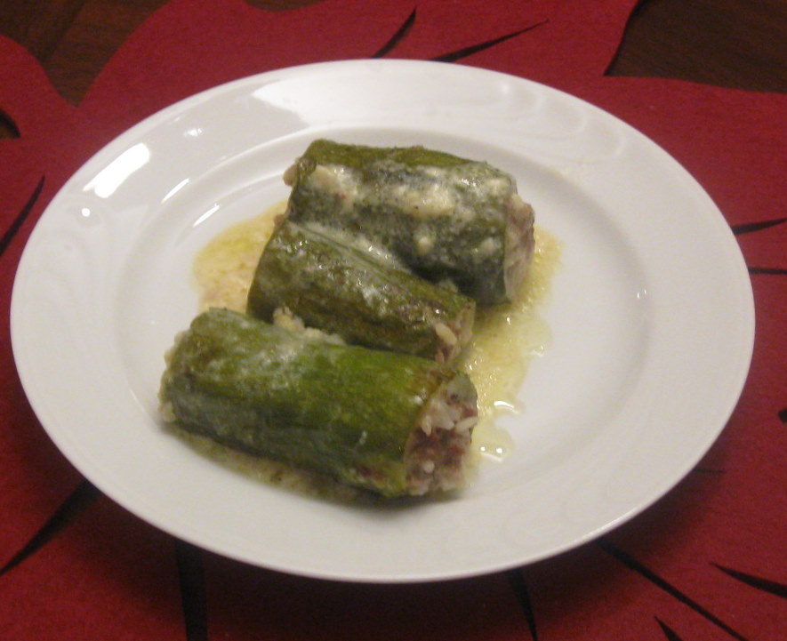To make stuffed zucchini, we opened a package with 2 pounds of minced meat but used only one for the zucchini. My husband and my son used the other pound to make their favorite meatballs. But they disappeared before I had time take a photo!