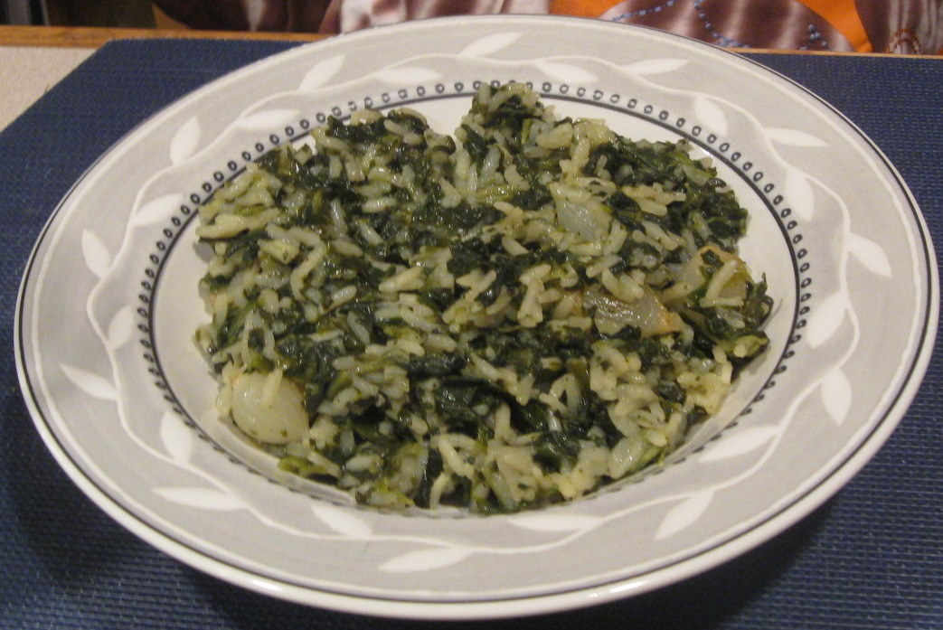 How to make: In a big, deep pan, saute the onion at low heat for about 5 minutes. Saute the garlic for a minute or two. Add the spinach and saute until soft, another 5 minutes. Add the (rinsed) rice and saute for couple more minutes. Add salt, pepper, oregano, fresh or dry mint (optionally) if you have it else dry. Add enough water to boil the rice. Normally, 1 cup water for 1/2 cup rice but read the package instructions of the rice you use. Add lemon juice to taste, cover and cook for about 20 minutes or until the rice is soft. While it’s cooking, keep an eye to be sure there’s enough liquid for cooking. Serve hot or cold. It’s equally yummy.