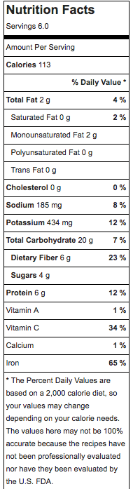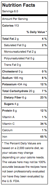 Recipe Servings: 6 Calories per serving: 113