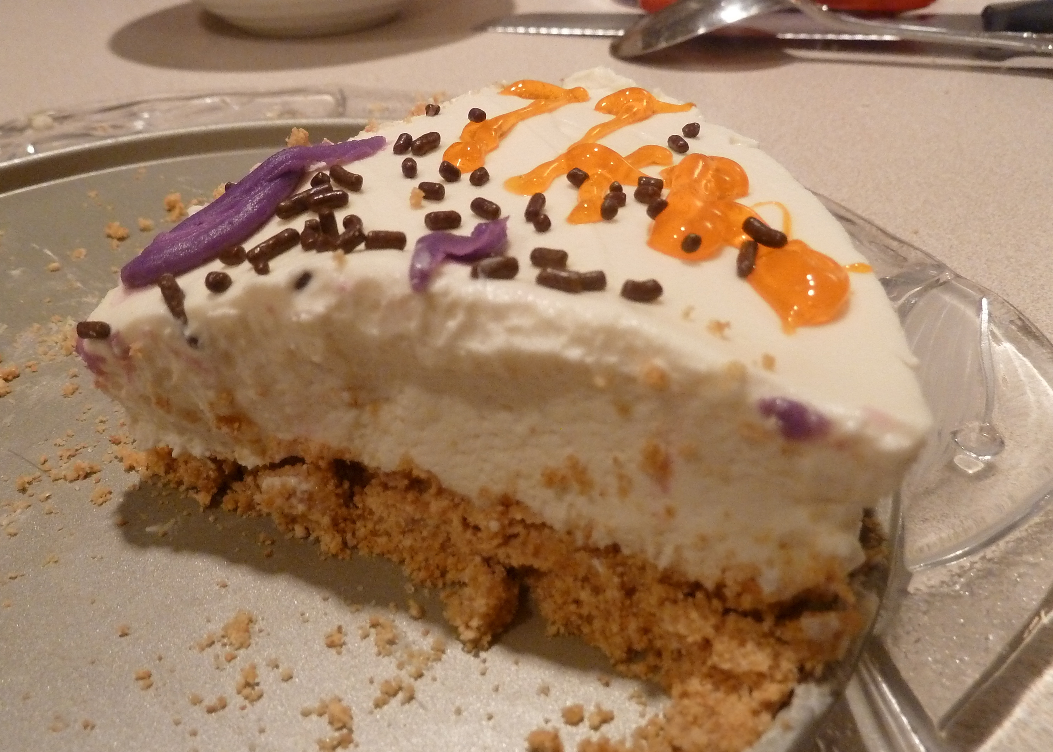 How to make: Melt the butter and combine it with the crumbled biscuits and sugar. If the biscuits are too sweet already, you can omit the sugar. Press the buttered crumbles at the bottom of a springform pan. Put it in the refrigerator while you are preparing the filling. For the filling, beat the cream cheese with the confectioner’s sugar until it becomes light and fluffy. Add the vanilla extract and beat for a few more seconds to integrate it. Combine with a cup of chantilly.To make chantilly, beat one cup heavy cream with four tablespoons confectioner’s sugar until it forms soft peaks. Do not overbeat. You can add a teaspoon of vanilla extract if you want but since you’ve used some in the cream cheese you don’t have to). Pour the filling in the pan and let it stand in the refrigerator for several hours. Mavroidi recommends 12 but even with less than that you will get a good, even if a bit soft, cake.