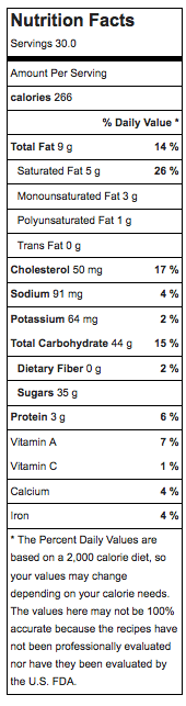 Servings: 30 (small as shown in photo) Calories per serving: 266